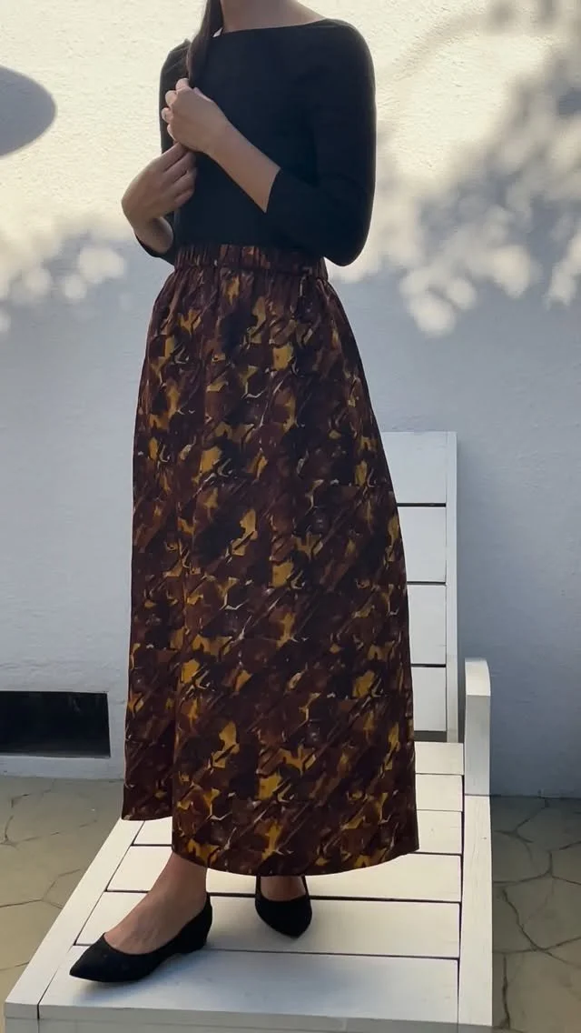 Open back full length gown with delicate peasant sleeve with raw edge finish in femme print